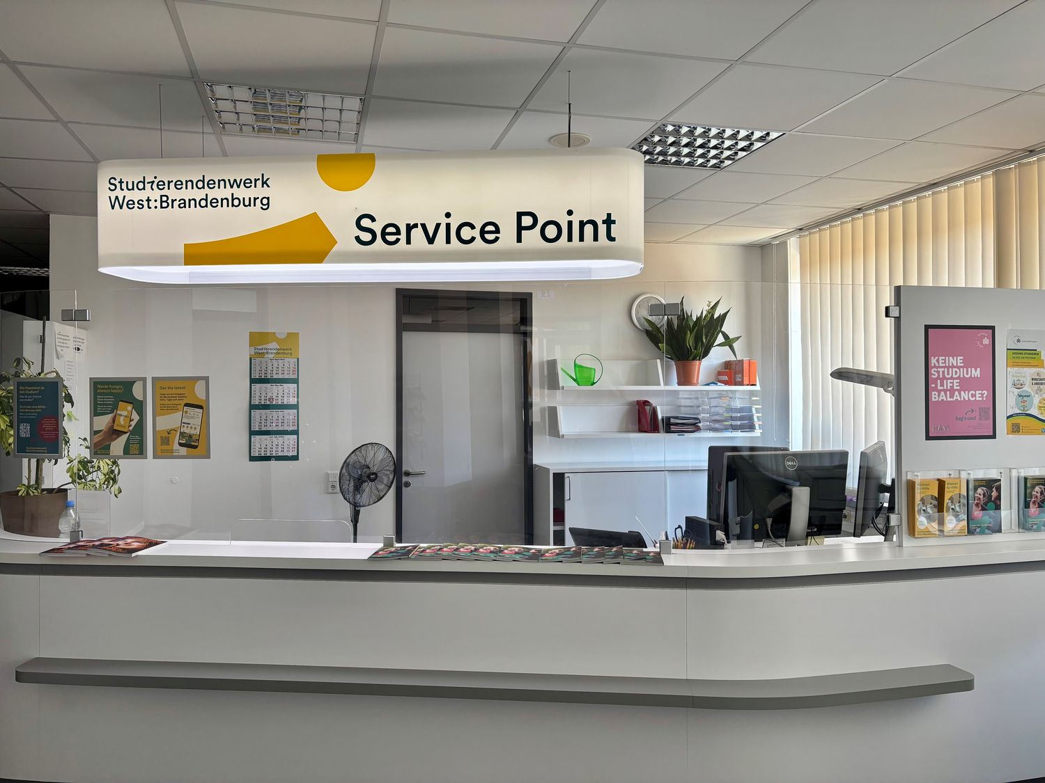 The Service Point at our headquarters is your first point of contact. Here our student staff will advise you in German or English. In the foyer you will find information flyers about studying. Would you like to submit your BAföG application? No problem: simply drop your BAföG application in the mailbox below.