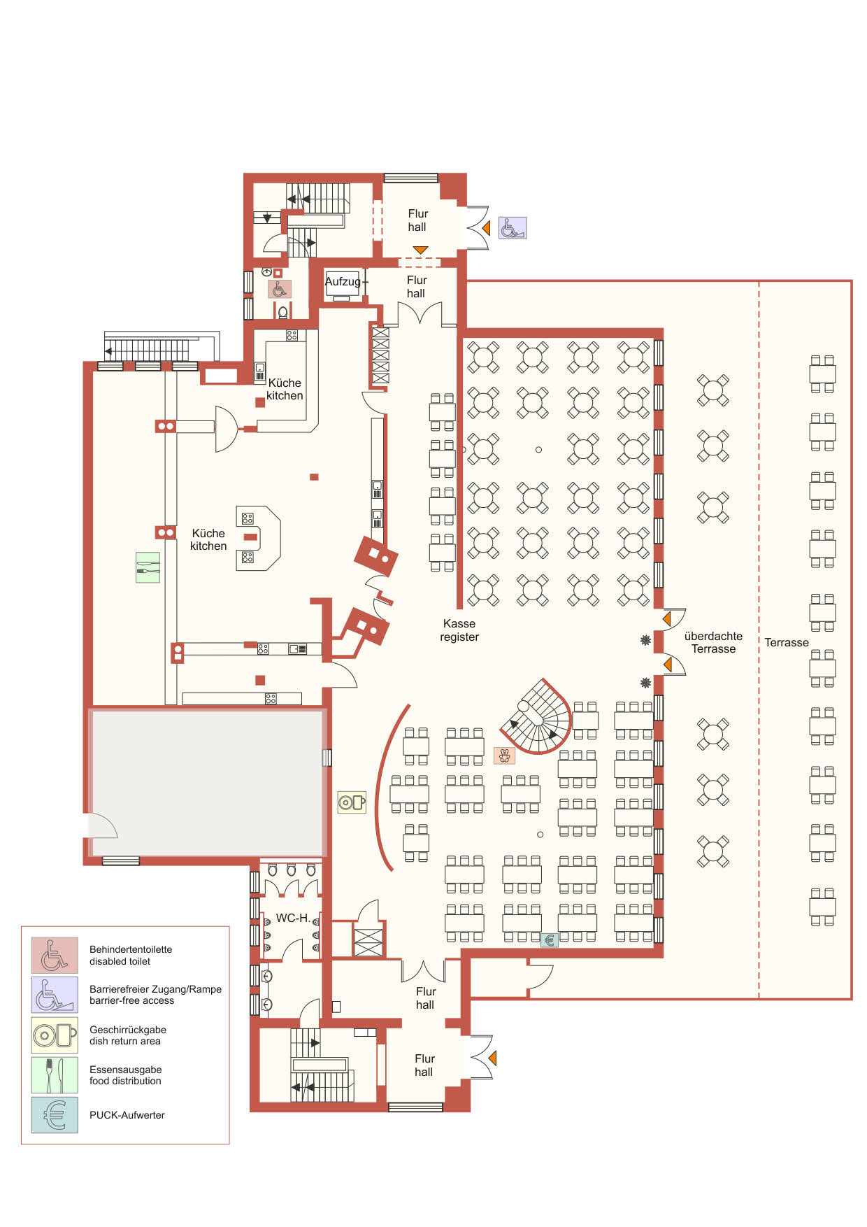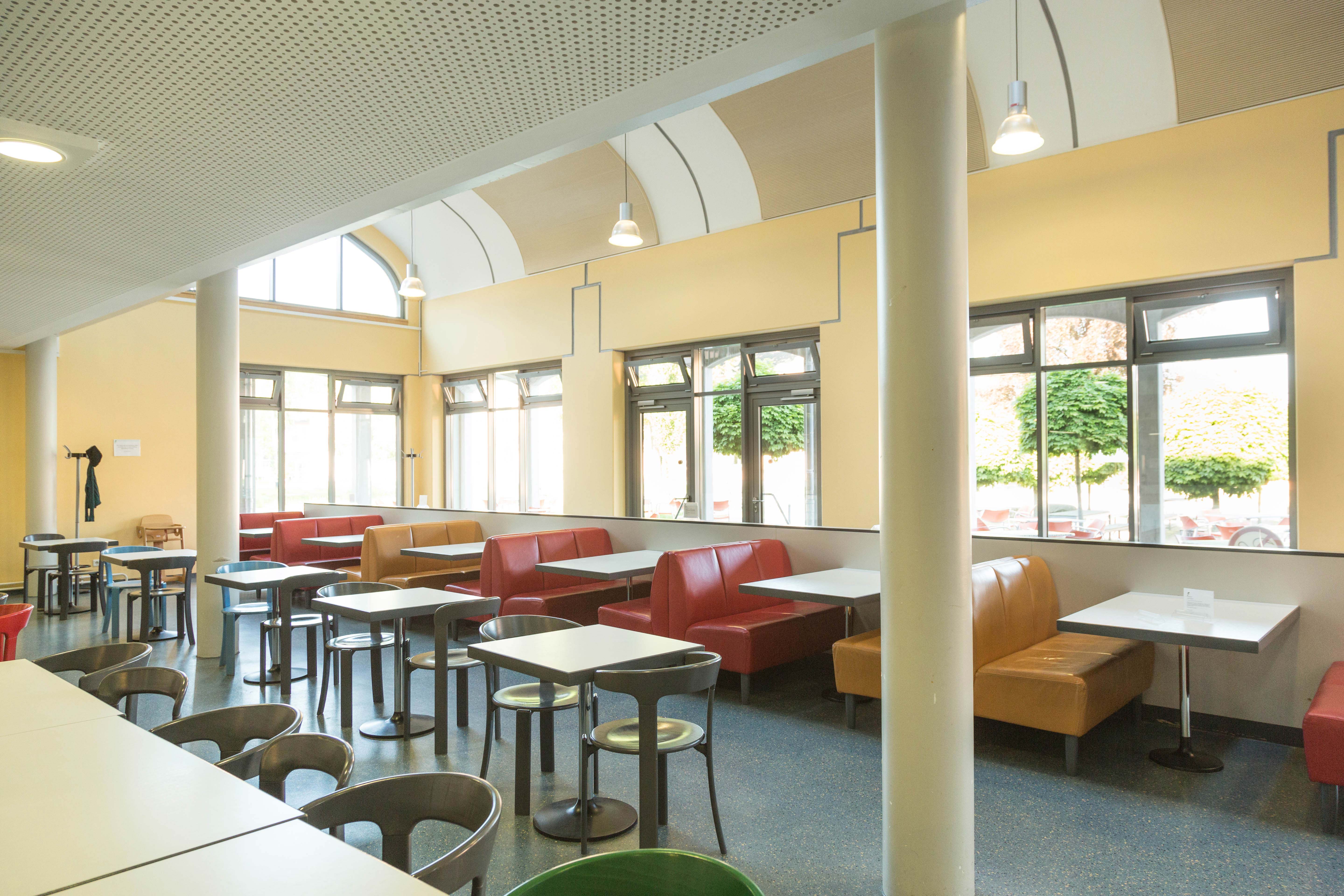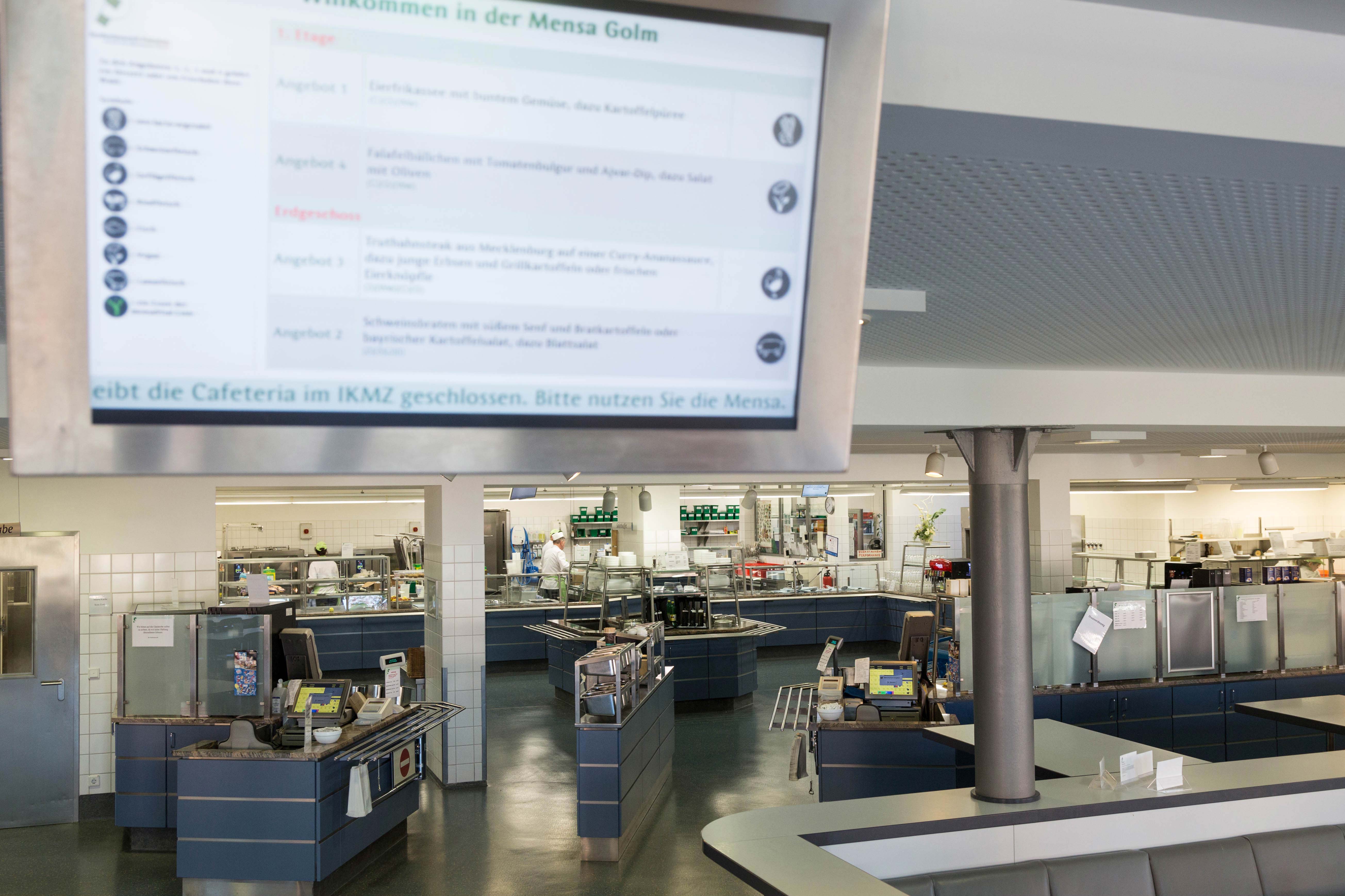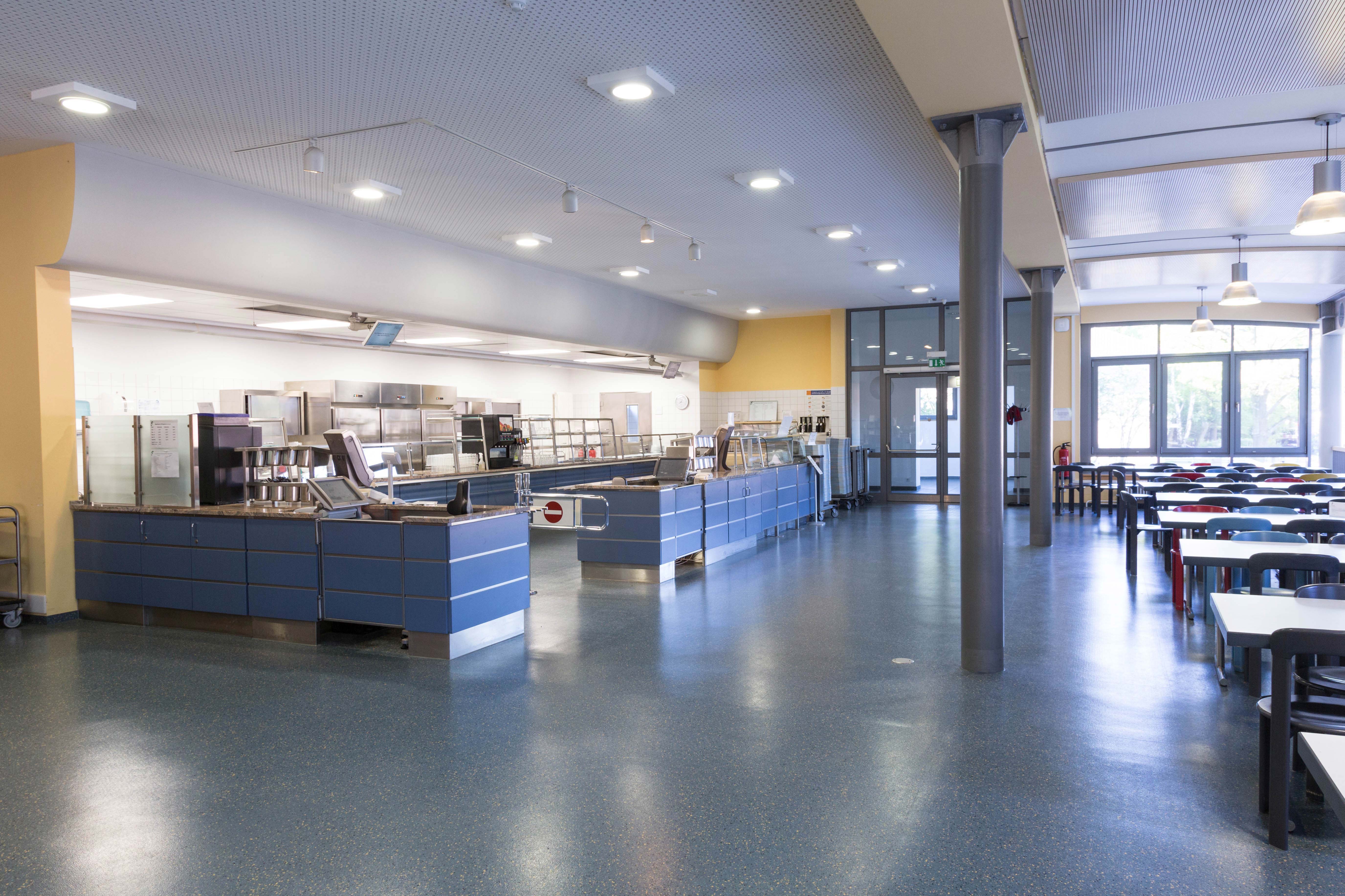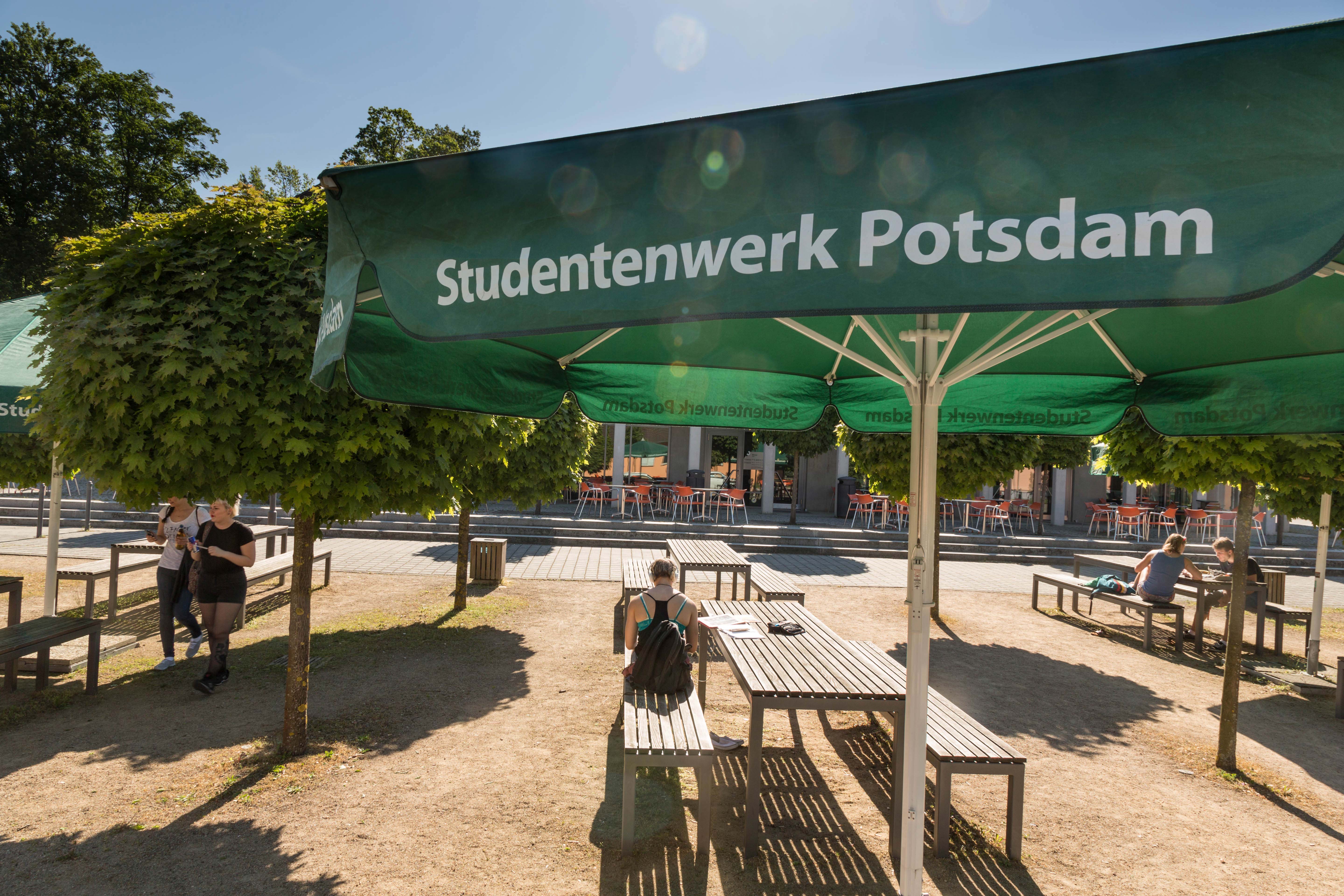 Unsere Mensa am Wissenschaftsstandort Golm liegt direkt auf dem Campus der Universität Potsdam, eingebettet zwischen Hörsälen und studentischen Wohnanlagen. Die Mensa bietet viel Platz auf zwei Ebenen. Das Gebäude ist komplett mit einem Arkadengang umschlossen, so dass bei fast jedem Wetter im Freien gegegessen werden kann. Auf einer weiträumigen Terrasse lässt sich das Mittagessen draußen bei warmen Temperaturen genießen.