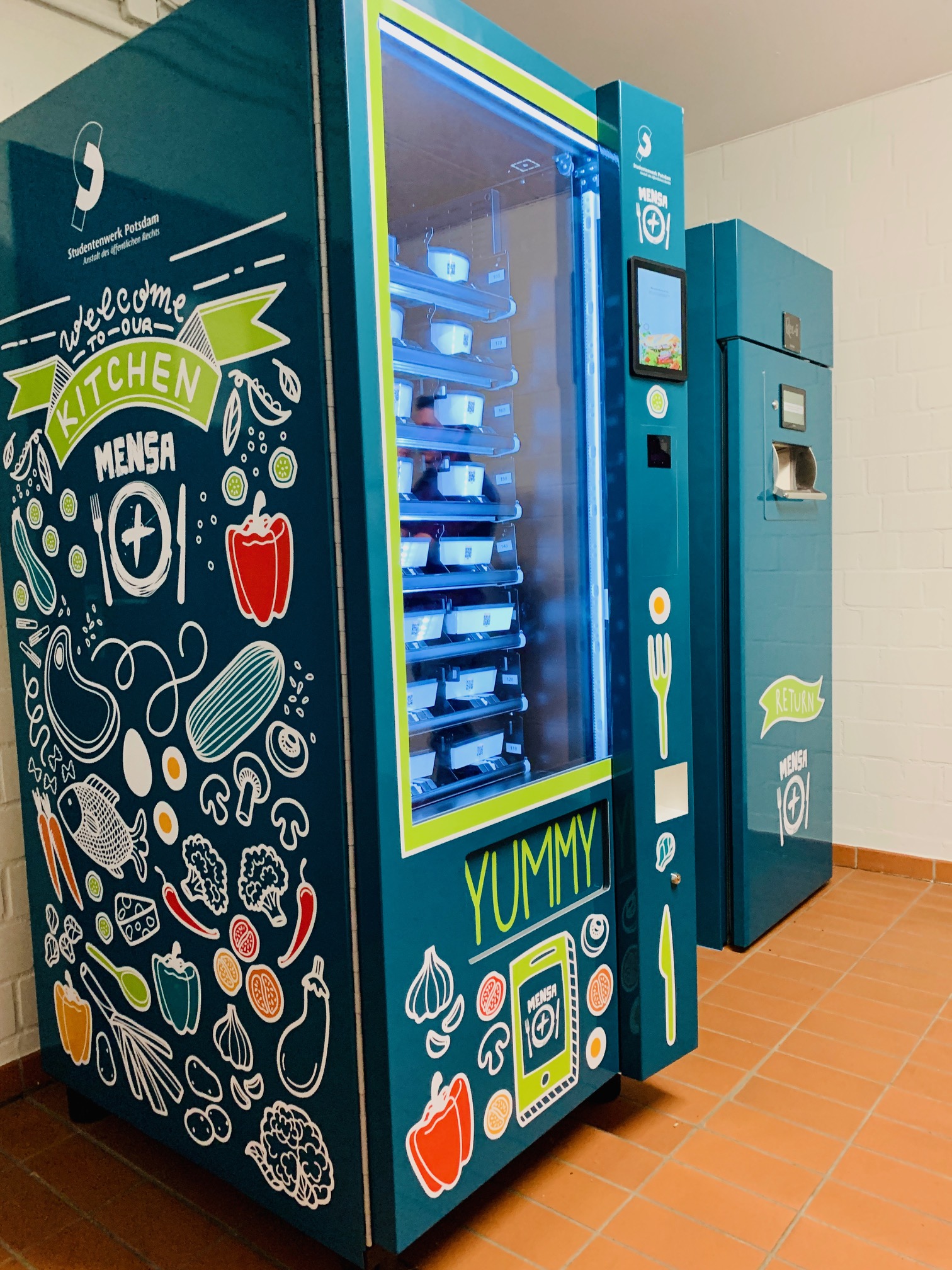 Die Mensa kommt ab sofort ins Wohnheim. Der Mensa-Lieferservice startet im November 2022 an den Potsdamer Standorten Kaiser-Friedrich-Straße und im Studierendendorf Stahnsdorfer Straße. Die Studierenden können per App Essen aus der Mensa bestellen, bezahlen und bekommen es am gleichen Tag in einen Warenautomaten in ihr Wohnheim geliefert.